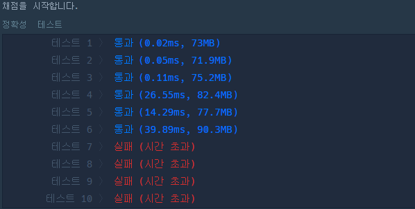 하지만 아무리 수정해도 테스트7~10까지의 늪에서 벗어나지 못 함.