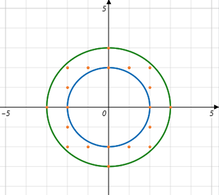 두 원 사이의 정수 쌍