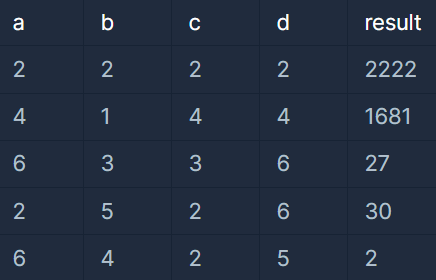 a, b, c, d는 1 이상 6 이하의 정수입니다.