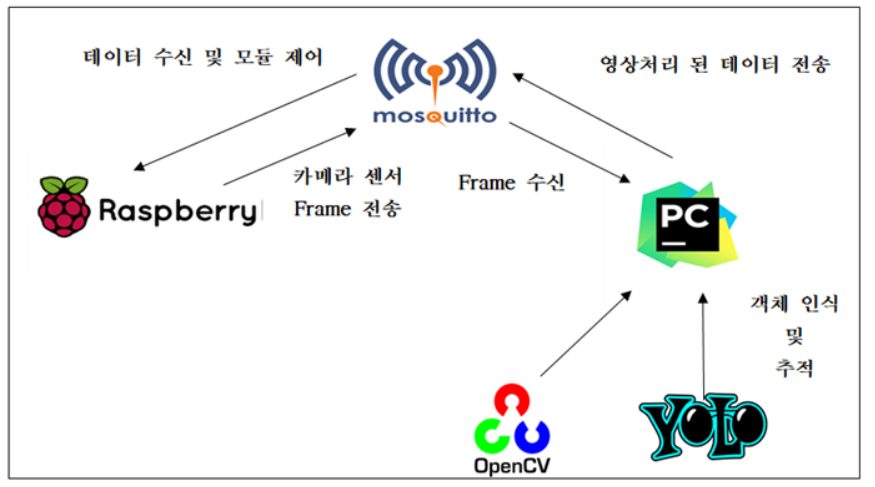 위 난관처럼 라즈베리파이 자체에 YoloV4와 OpenCV를 설치를 하려고 했지만 너무 용량이 크고 무거웠다. 그래서 아예 라즈베리파이와 PC 환경이 1대1로 통신을 하여 정보를 주고 받는 것을 생각했고, 사용 기술은 MQTT 통신 프로토콜이다.